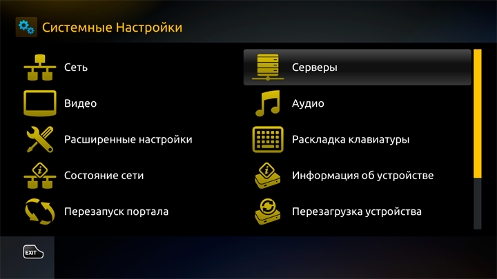 С помощью навигационных кнопок выбираем пункт «Серверы» и нажимаем ОК на пульте