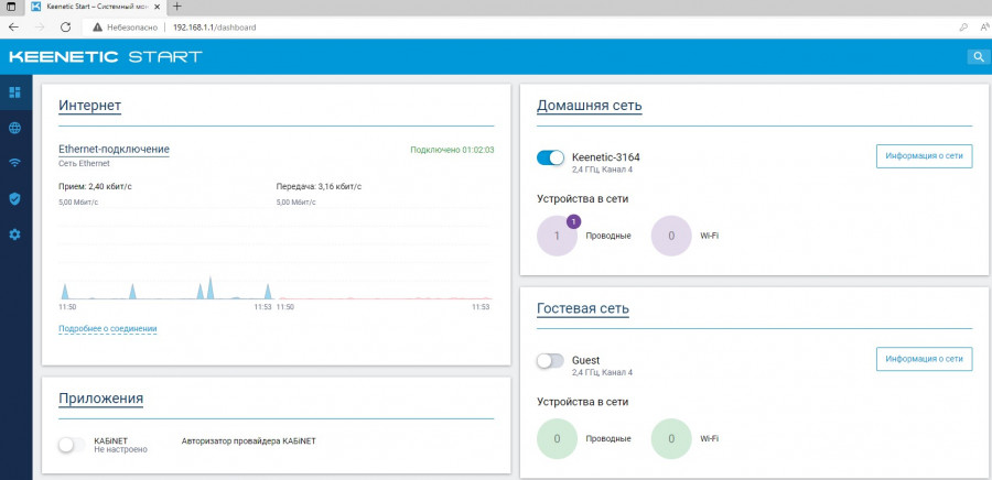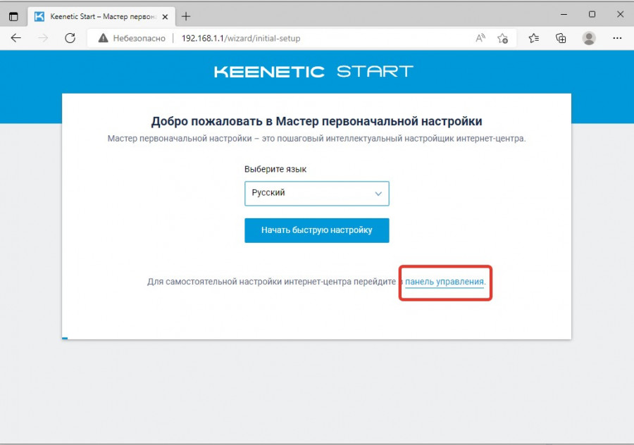 • Для входа в интерфейс настройки маршрутизатора откройте на компьютере интернет-браузер (Microsoft Edge, Mozilla Firefox, Google Chrome, Opera и т.д.) и введите адрес http://192.168.1.1 и нажмите «панель управления». Если вы не можете зайти в web-интерфейс, или маршрутизатор ранее был настроен для использования в других условиях – рекомендуем восстановить заводские настройки устройства или проверить настройку сетевых реквизитов на ПК