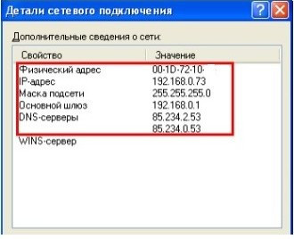 В открывшемся окне «Детали сетевого подключения» можно уточнить все основные сетевые параметры, такие как mac-адрес (физический адрес сетевой карты), IP-адрес, маску подсети, основной шлюз и DNS-серверы.