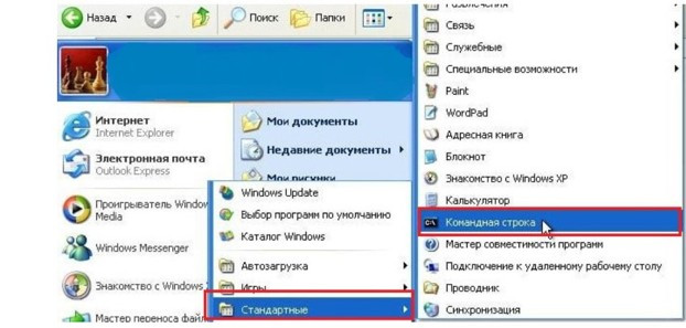 Можно так же посмотреть данные о сетевом подключении, через командную строку, для этого выберите меню “Пуск”, найдите вкладку "Стандартные" и в открывшимся окне "Командная строка".
